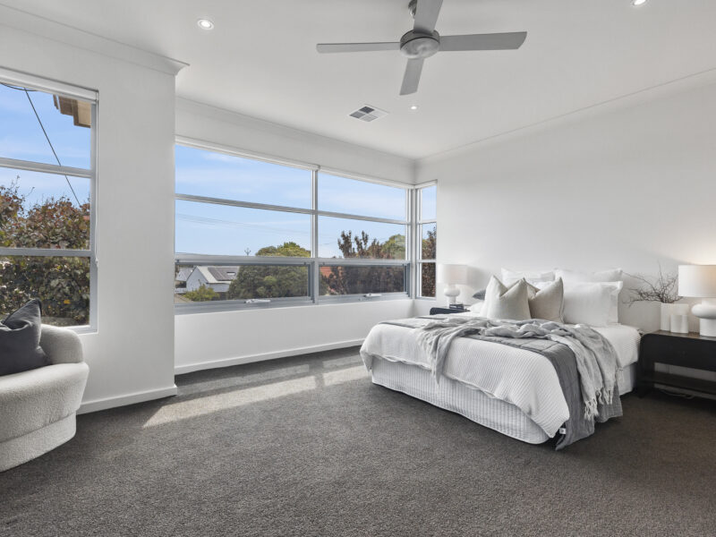 Step into the luxurious master bedroom, flooded with natural light from the large windows. Enjoy the comfort of a ceiling fan for those warm summer nights. The ensuite boasts a spacious shower and a double basin vanity, complemented by his and hers walk-in robes, providing ample storage space for all your needs.