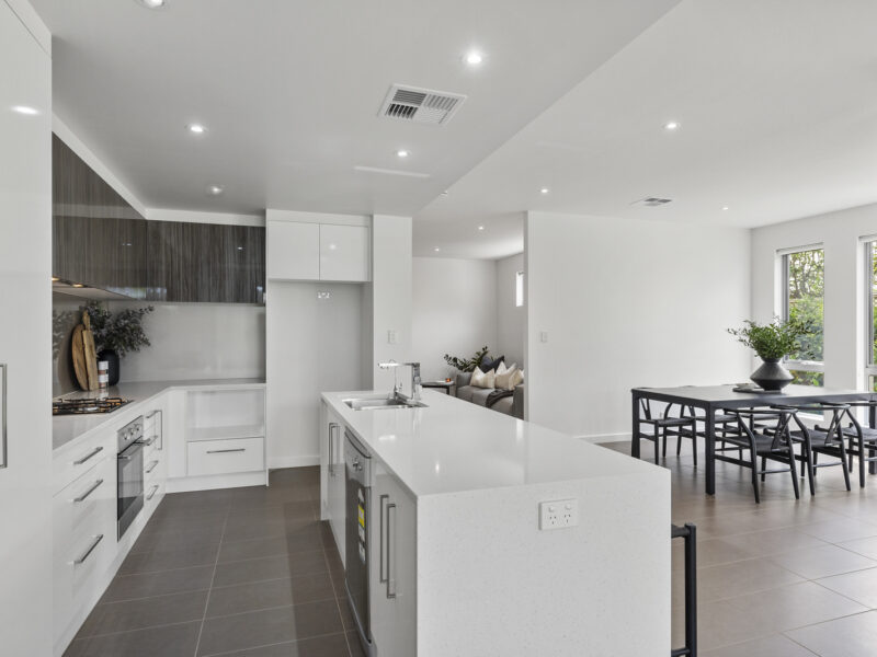 The clean-line finishes, overhead kitchen cupboards, and stone benchtops offer a chic and practical cooking space. Prepare delicious meals with ease using the Euro stainless steel gas cooktop, electric oven, and dishwasher. You are spoilt for choice with two beautiful living spaces adjoining the kitchen and dining room.