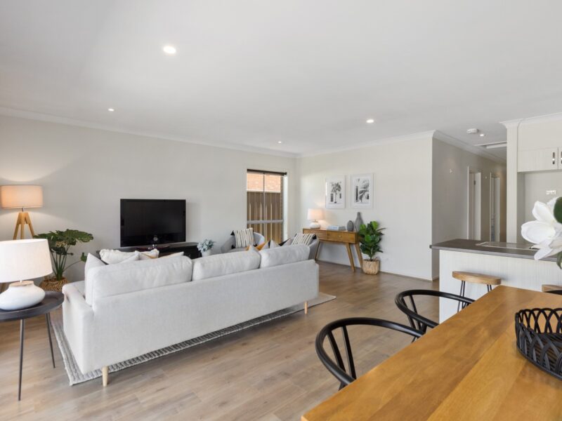 At the end of the home, you are greeted with an open plan living, dining and kitchen area for the family to bond, outlooking a small court yard style backyard with side access.