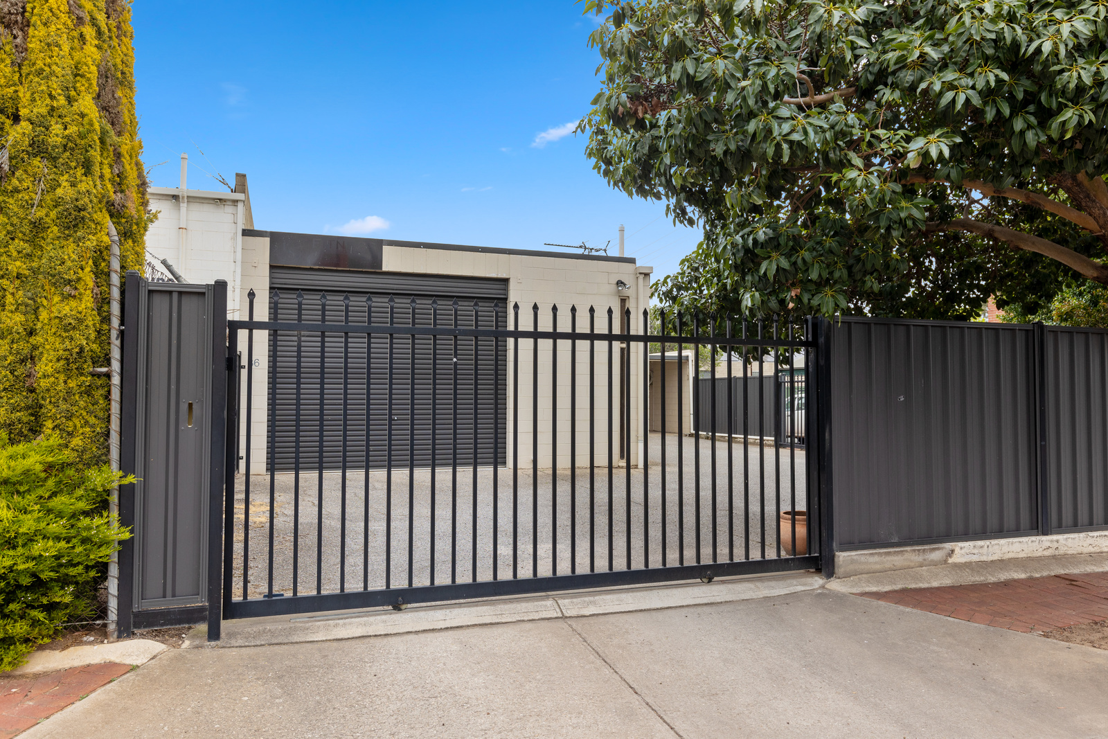 This secure, electric-gated property is positioned on a corner allotment and features the option of leasing the Warehouse only.