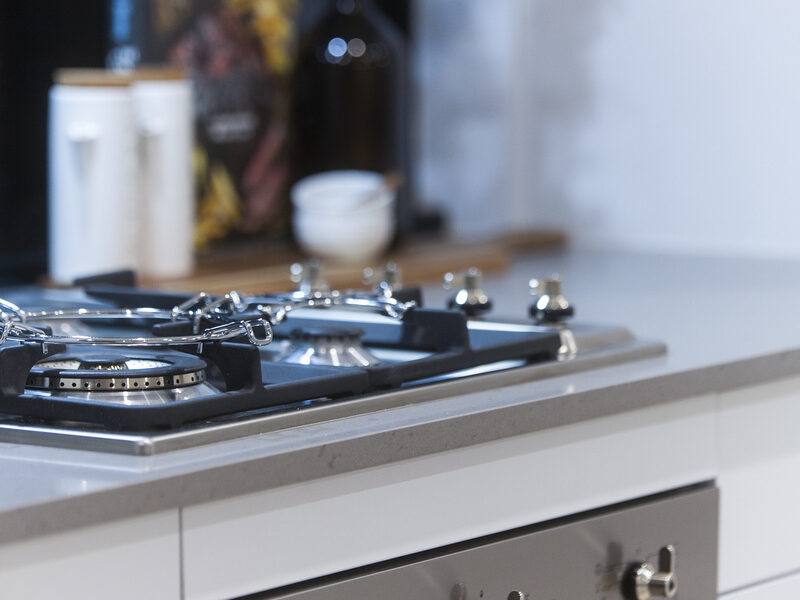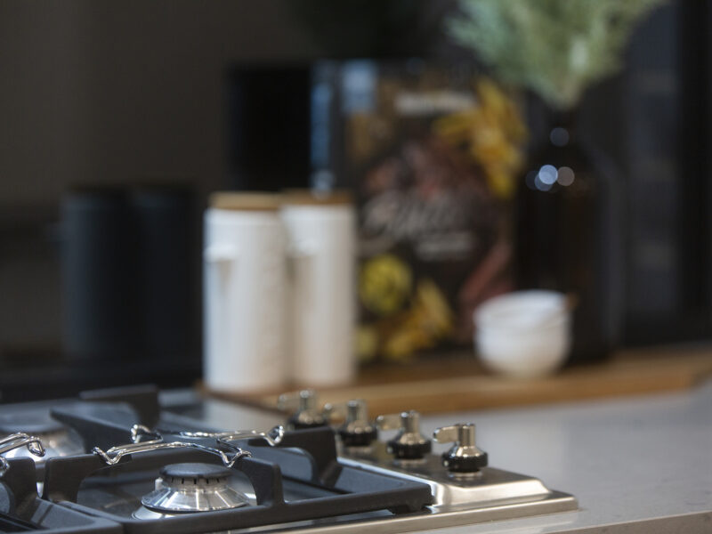 You’ll love the kitchen, with the architecturally designed layout that boasts multiple cupboards and bench space, black Phoenix fixtures, stainless steel Smeg appliances including a gas cooker, electric oven, dishwasher and range hood and a fixed window splashback behind the stovetop. The island bench has a black sunken double sink and cupboards located at both sides of the bench.
