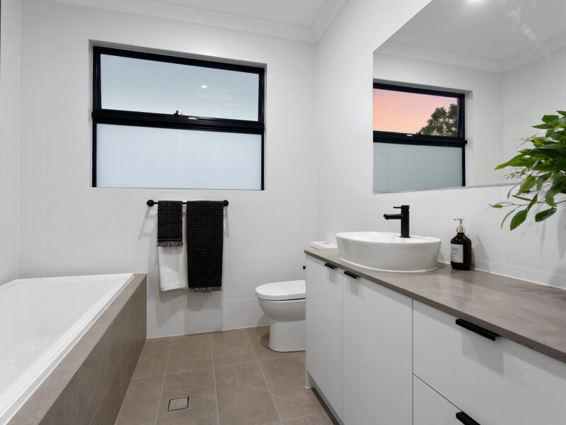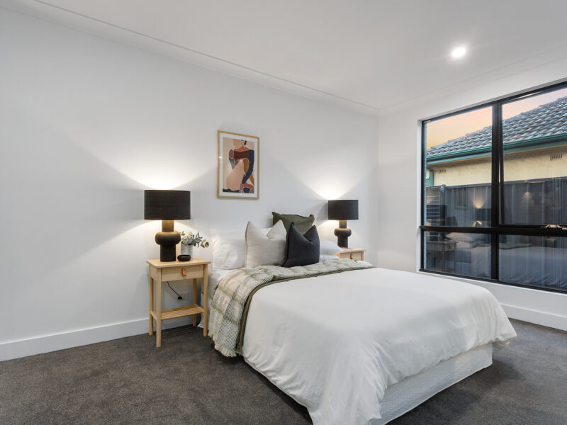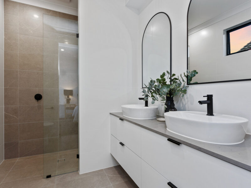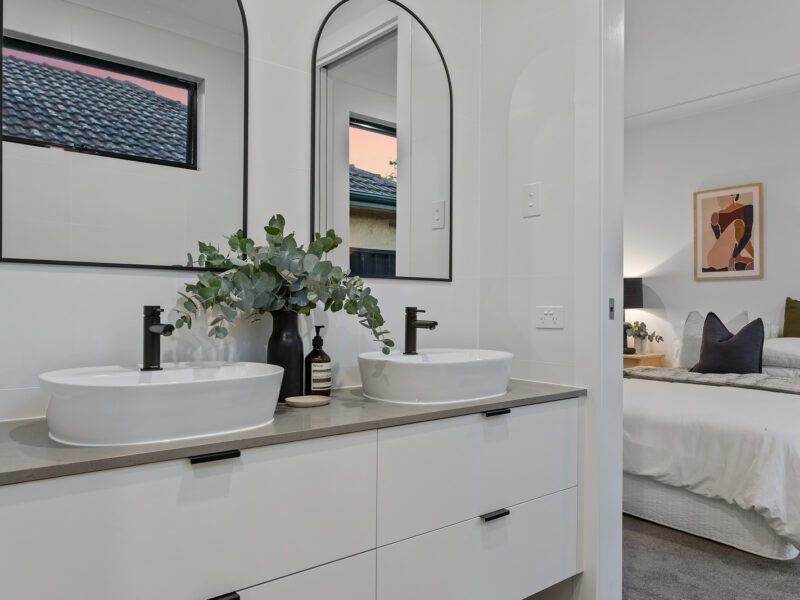 The master bedroom includes two beautiful spacious built in robes and ensuite. The ensuite has floor to ceiling tiles, a glass shower screen, a double basin floating vanity with multiple cupboard storage and high quality Phoenix tapware and fixtures.