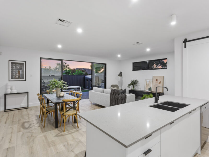 The backyard has a modern feel to it with double sliding doors, overlooking a low maintenance area making life a little easier for those busy days and a perfect area to relax and enjoy the Adelaide weather.