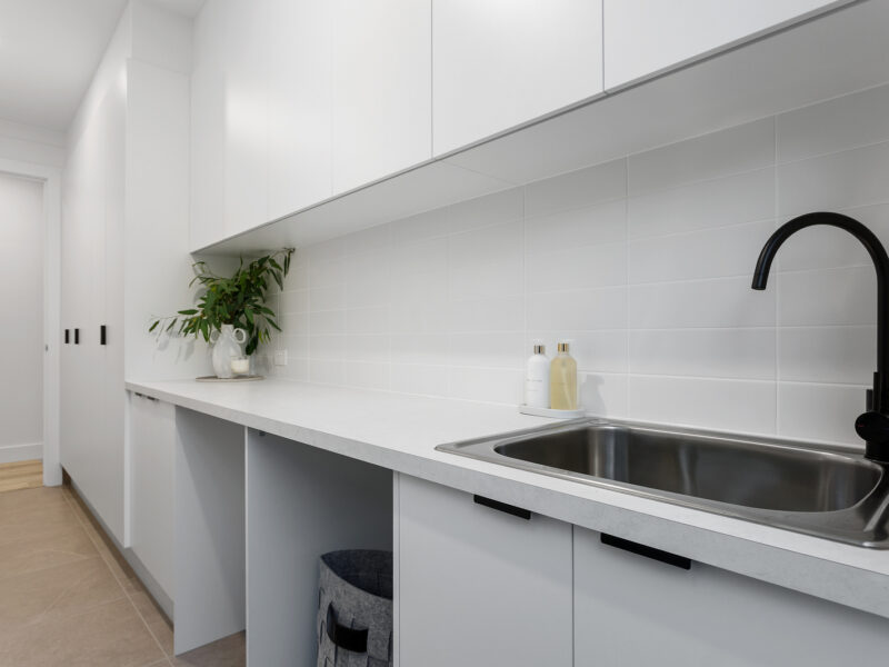 For those who adore large laundry’s and enjoy a well organised space, this laundry is for you! Large and spacious with all the bells and whistles, cupboards galore, beach top space to surprise and to finish it off two provisions for the washing machine and dryer.