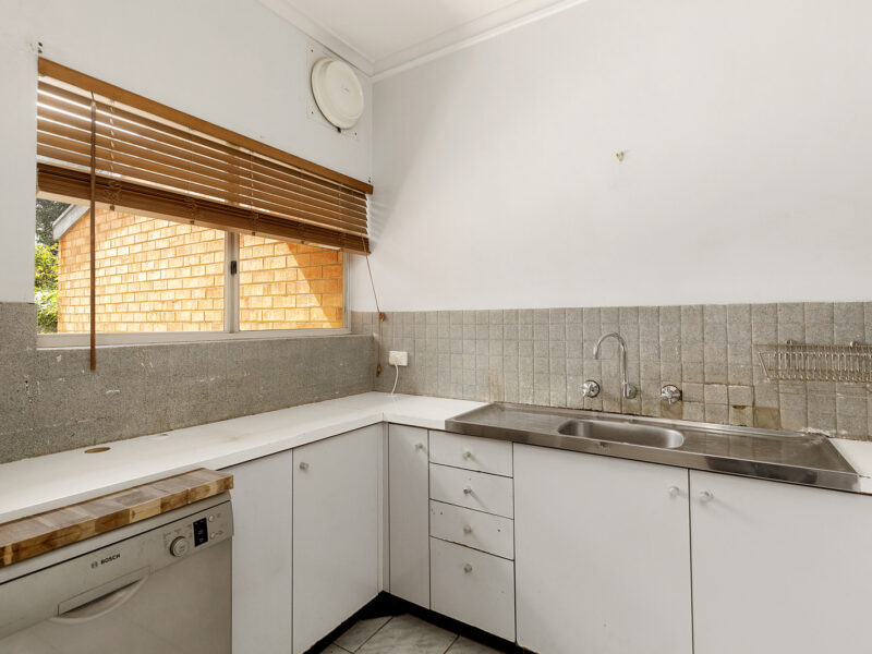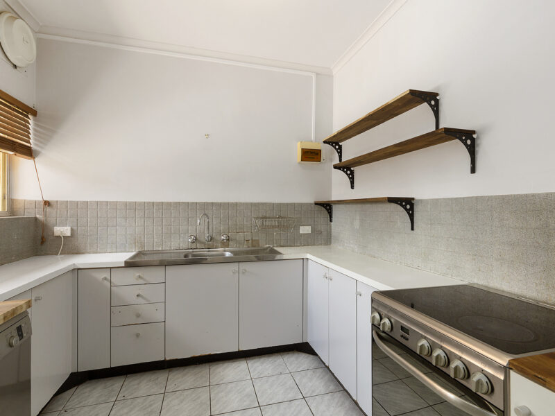 The kitchen boasts an electric oven and stove, dishwasher and sink, with multiple cupboard and bench space.