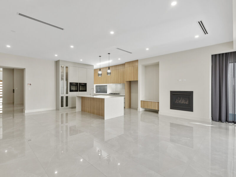 Down the wide and airy passage, you are greeted with a beautiful large open plan living & dining area with a gas fireplace ready for those cold winter nights. The chef style kitchen is equipped with quality fixtures such as a walk-in gallery pantry, Bosch double ovens, Bosch 900mm gas stove top and a Miele dishwasher. The living area is overlooking the alluring outdoor area that is perfect for entertaining, and a tranquil oasis to come home too. The under main roof south facing alfresco has downlights and a ceiling fan for your comfort on those warm summer days.