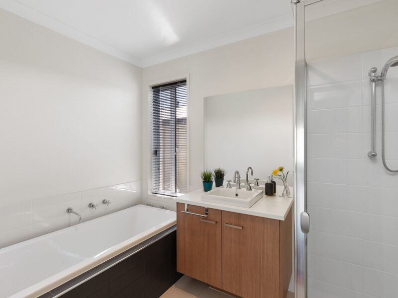 – Main bedroom with ceiling fan, stylish ensuite and walk in robe